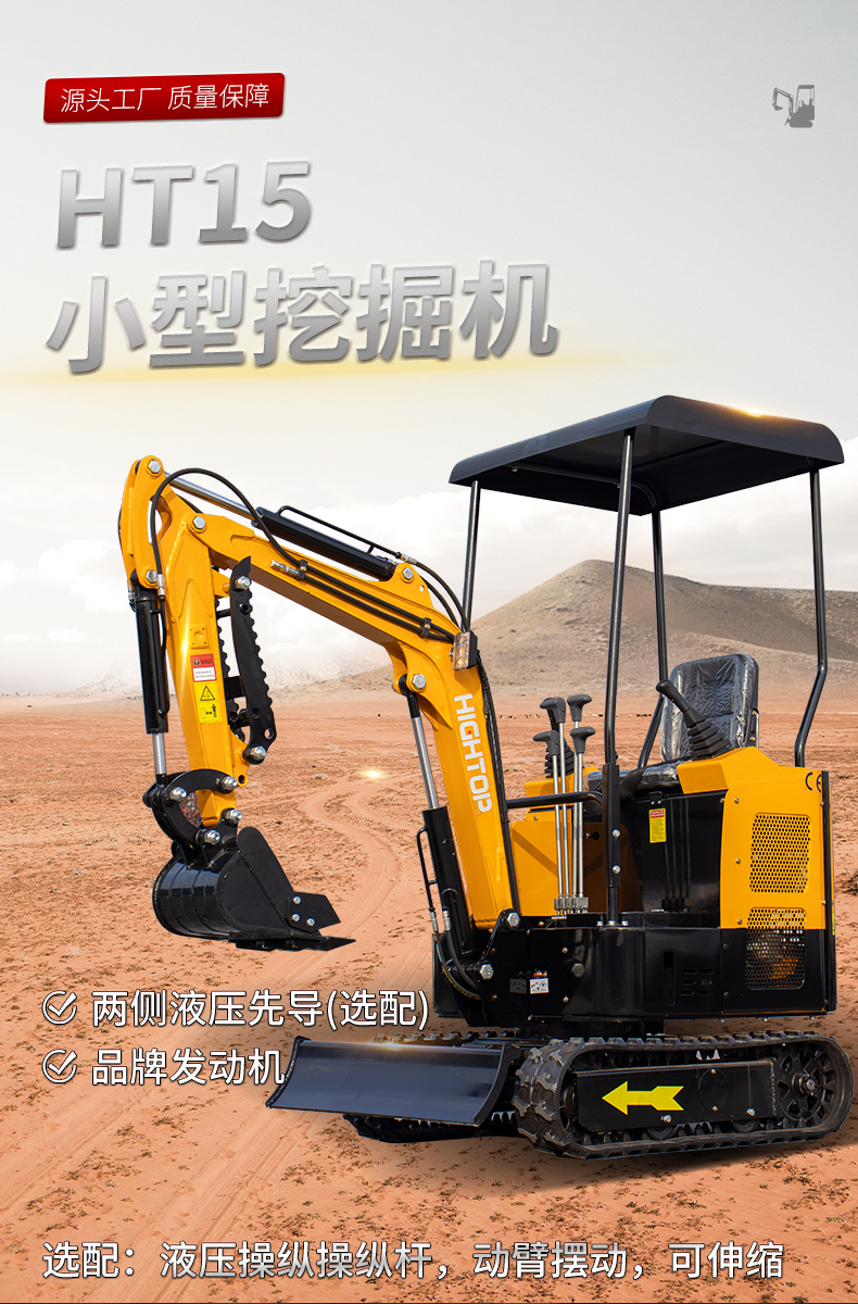 常規(guī)土石方、農田作業(yè):需兼顧效率與通用性,海拓 HT15 小型挖掘機其1500kg 整機重量,斗容量 0.03m3,能滿足基礎挖填、農田平整等需求,360° 旋轉 + 兩側液壓先導操作,作業(yè)靈活快速。