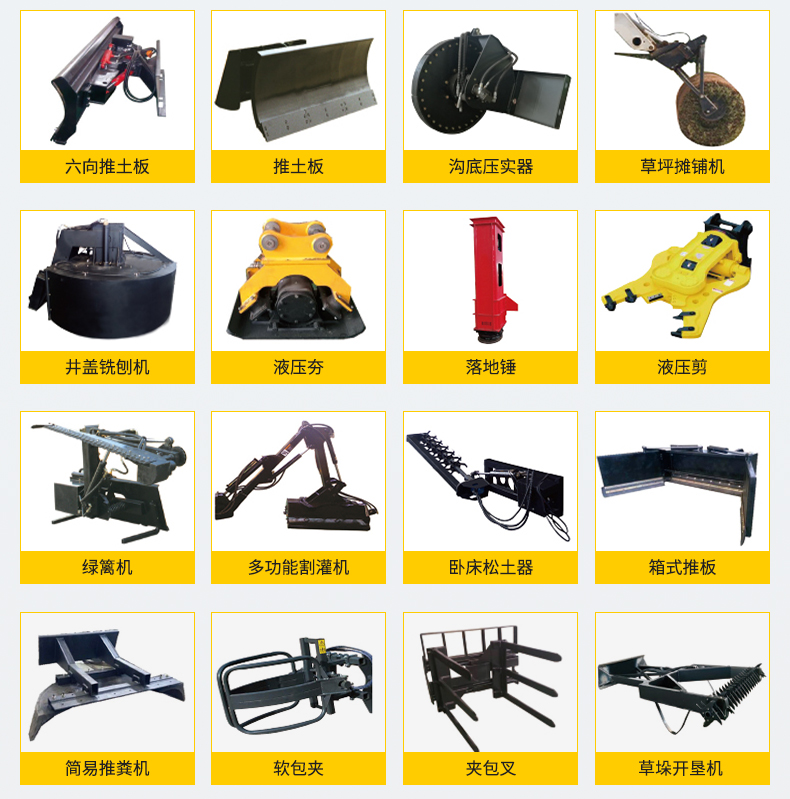 ④ 農(nóng)林畜牧類:抓草斗、移樹(shù)機(jī)、碎木機(jī)、推糞機(jī);