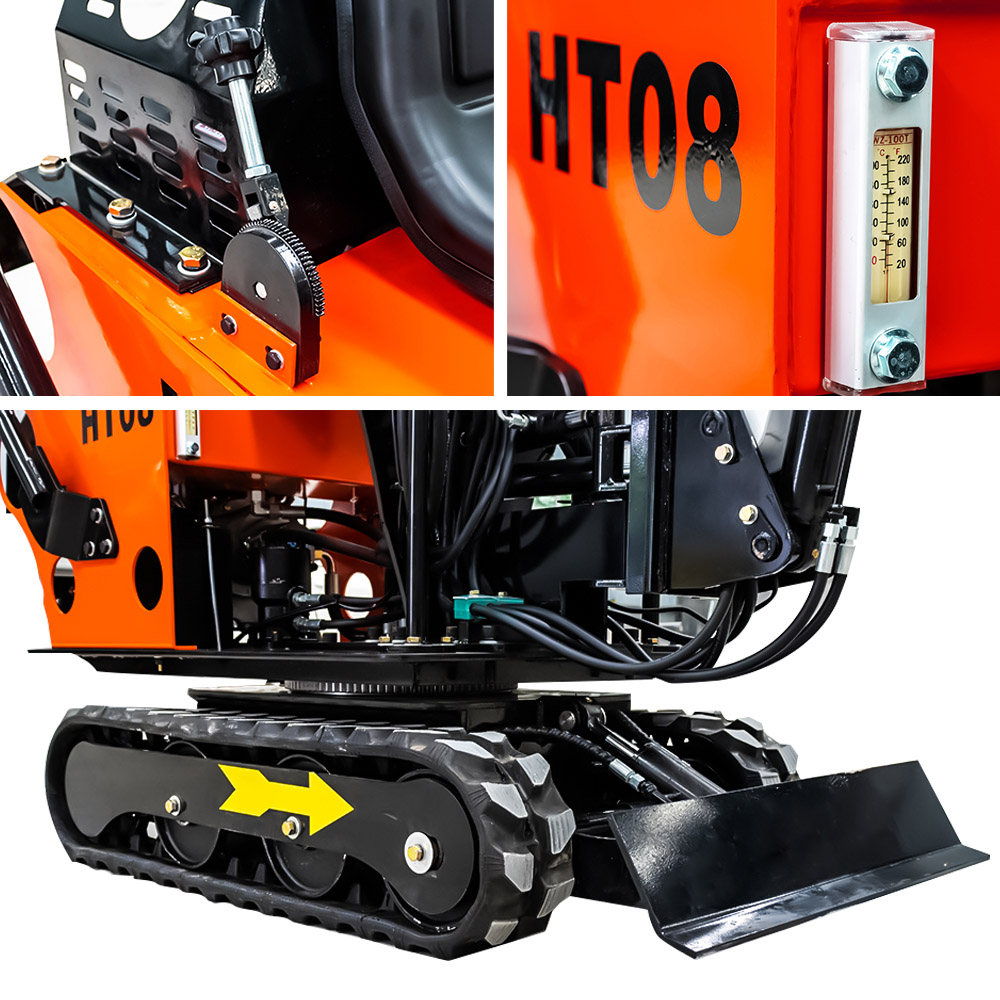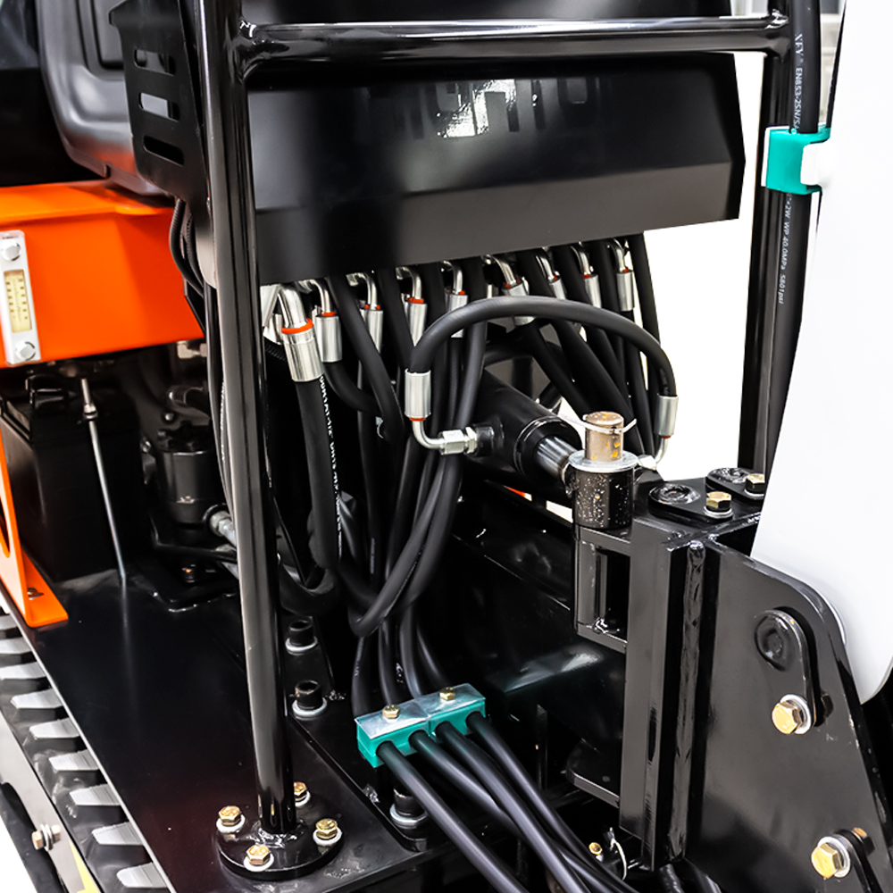 HT08小型挖掘機獨特的大臂結(jié)構(gòu)設(shè)計,操作前管道暢通。 保護蓋可保護管道免遭破壞。